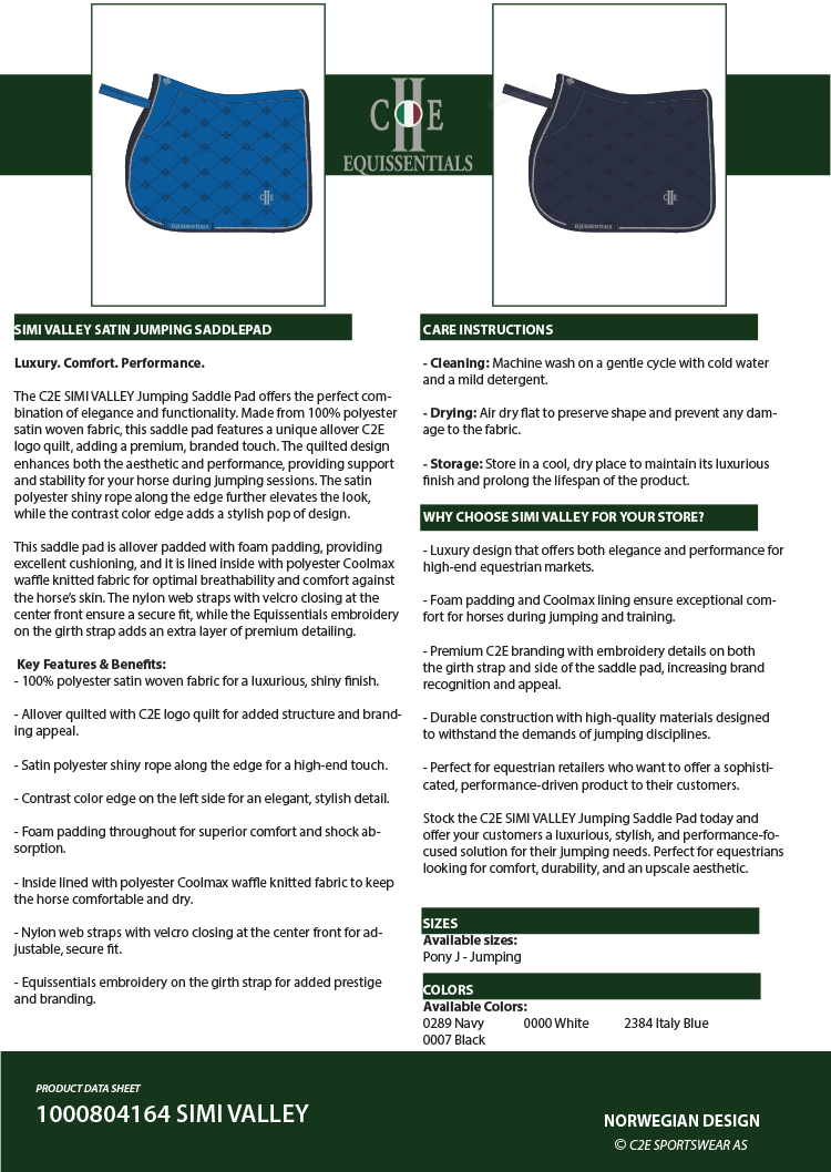 C2E SIMI VALLEY Jumping Satin Saddlepad